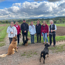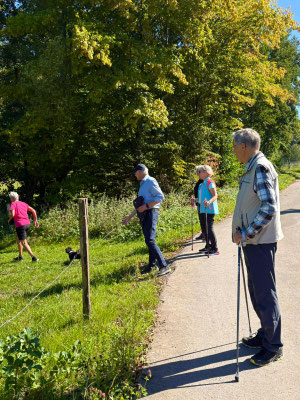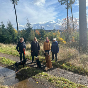 durchgeführt. Mit 8 Frauen und Männern sowie 4 Hunden ging es vom Sportplatz über den Stumpf nach Vöhl. Von dort aus wanderten die Teilnehmenden über den Steinberg zurück nach Marienhagen.