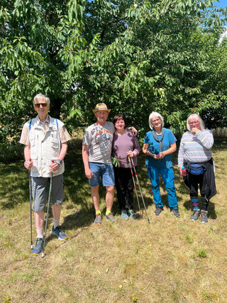 Bei angenehmen Temperaturen nahmen 7 Teilnehmerinnen und Teilnehmer an der Wanderung durch unsere Gemarkung teil. Neben der immer wieder schönen Aussicht konnte man auch die verschiedensten Getreidefelder und botanischen Besonderheiten in unserer Umgebung bestaunen. Die Wegstrecke betrug diesmal ca. 5 km